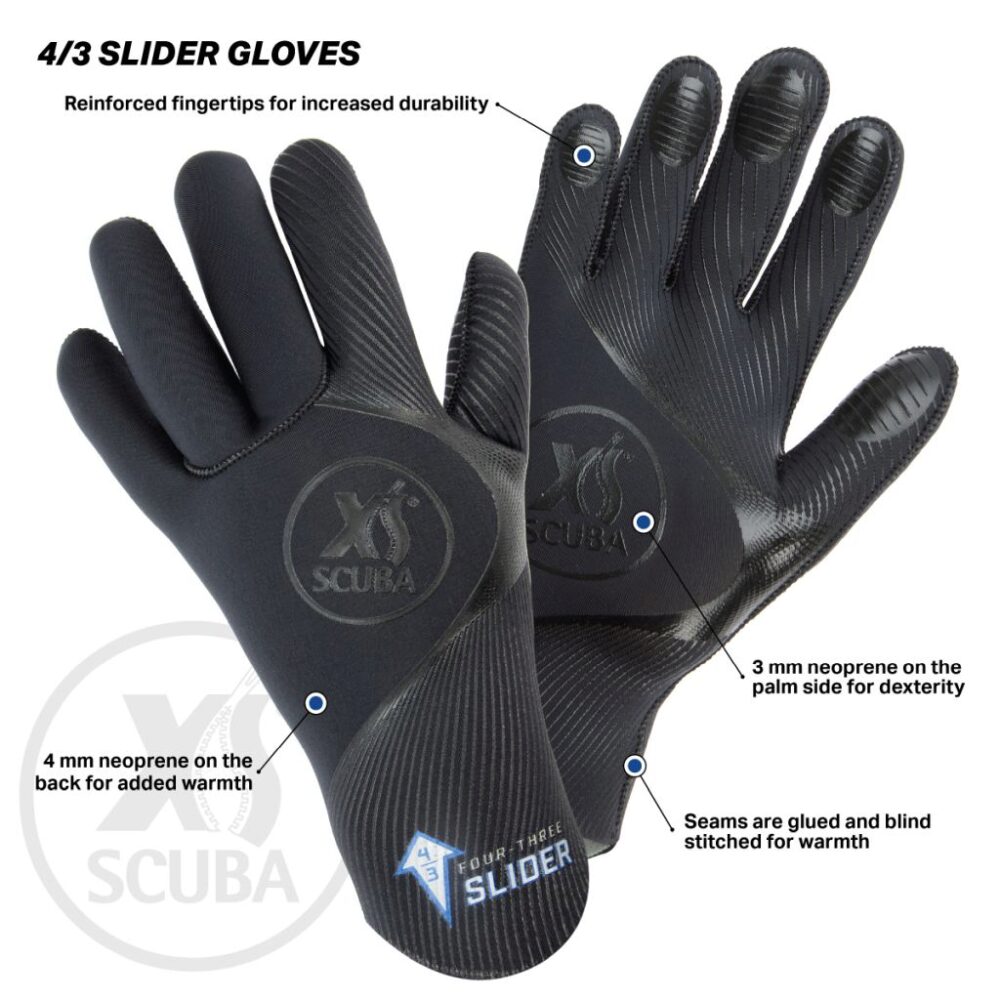 Are you tired of fighting with your old gloves? Slide your hands into a pair of 4/3 Sliders and find out for yourself how easy it is to put on these gloves. The 4/3 Slider uses premium super-stretch neoprene covered with a tight-weave jersey. The result speaks for itself. Dual thickness 4 mm neoprene on the back for added warmth 3 mm neoprene on the palm side for dexterity Seams are glued and blind stitched for warmth Reinforced fingertips for increased durability Customer friendly packaging 6 sizes available XS – 2XL