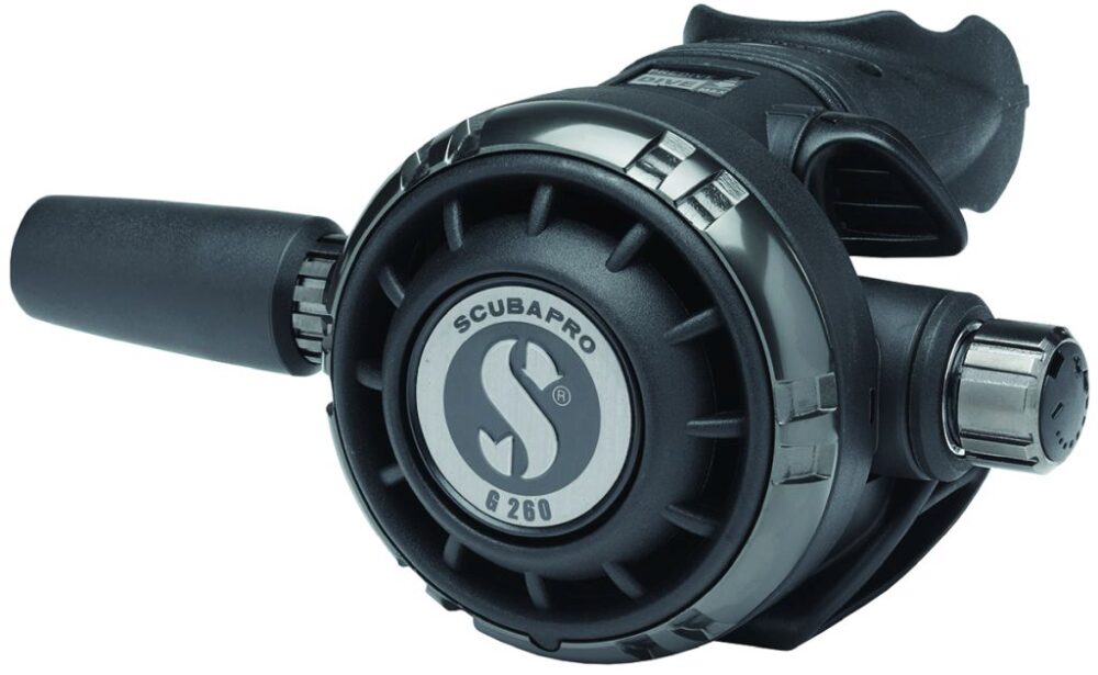 The MK19 EVO BT/G260 Carbon BT is a rugged, reliable, and sharp-looking regulator system that delivers solid breathing performance in all diving conditions and water temperatures. While retaining its large diaphragm and popular tech diving features, the new G260 Carbon BT ratchets up its ruggedness and durability with a lightweight carbon fiber front cover and a scratch-resistant Black Tech Coating.